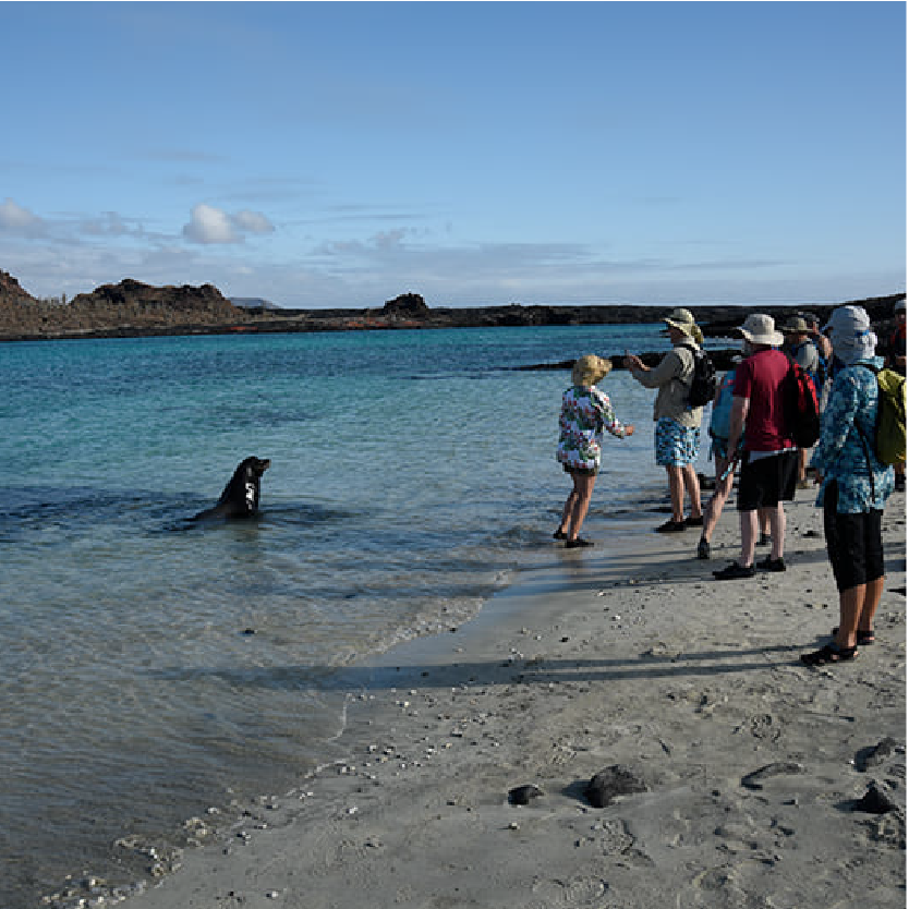 Embrace the morning at Gardner Bay, a pristine piece of paradise in the Galapagos archipelago. Sugar-white coral sands merge with crystal-clear turquoise waters, creating a tropical oasis. Watch as the beach becomes a theatre, starring sun-basking sea lions in a playful performance. This idyllic setting invites you to stroll along the coast, immersing yourself in an enlightening experience as you delve into the biology of the endemic fauna – from the melodious Española mockingbird and the unique marine iguanas to the regal Galapagos hawks.